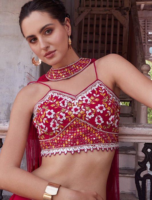 Rani Pink Georgette Wedding & Party Wear Lehenga Choli For Women Readymade Handcrafted Elegance