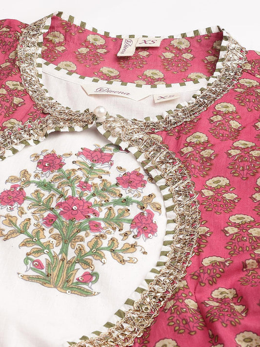 Dark Pink Floral Cotton Ethnic Anarkali Kurta with Jacket