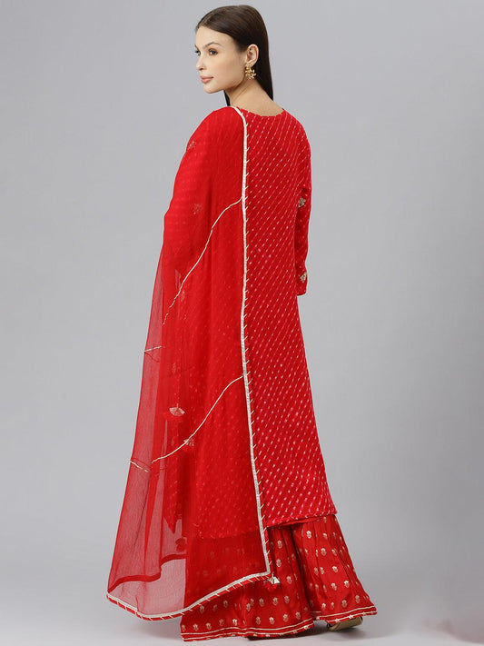 Divena Pure georgette Jaipuri Mothda Red Kurta Sharara Set with Dupatta