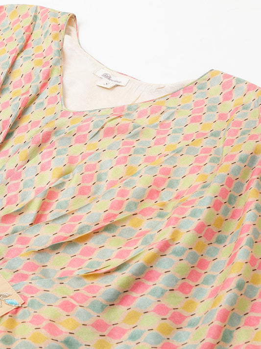 Multi Color Printed Muslin Flared Party Wear Kaftan Dress