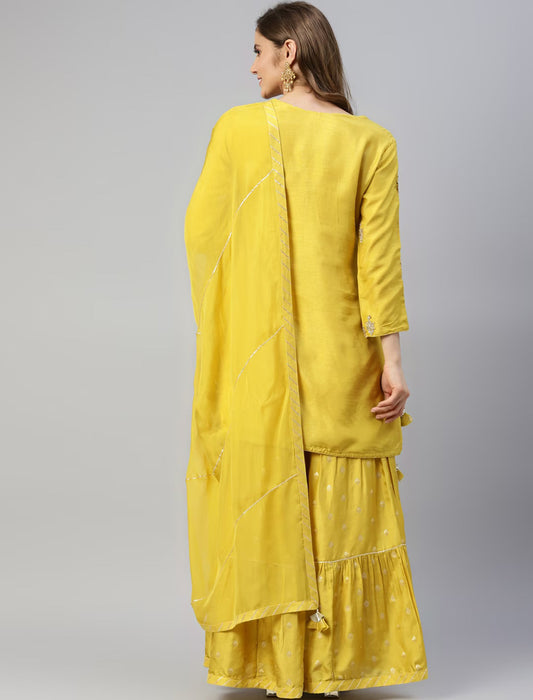 Yellow Embroidered Chanderi Silk Kurta with Sharara & Dupatta Kurta Sets For Women