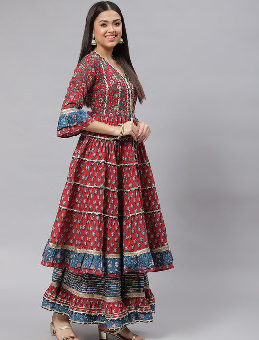 Ethnic Maroon & Blue Anarkali Kurta Sharara Set with Dupatta