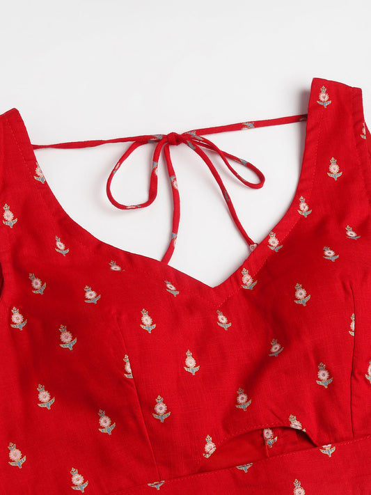 Ethnic Motifs Printed Maroon Lehenga & Blouse With Dupatta