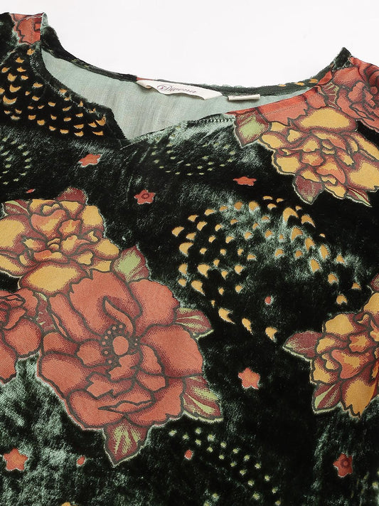 Black Floral Printed Velvet Kurta with Harem Pant & Dupatta Kurta Sets For Women