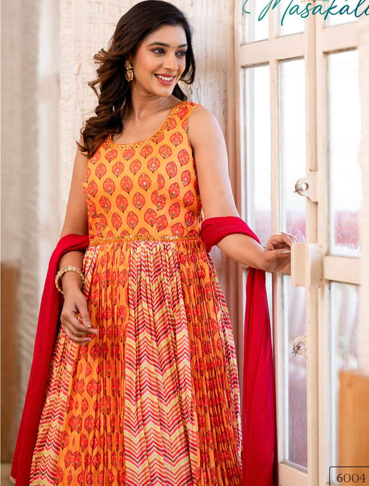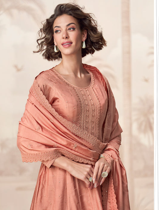 Peach Premium Silk Free Size Designer Party Wear Gown For Women