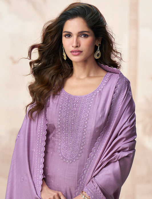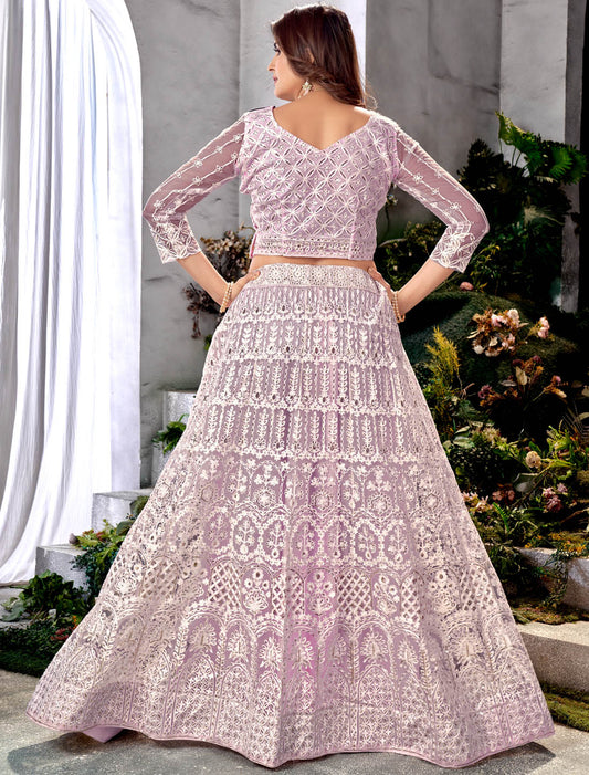 Lavender Georgette With Soft Net Embroidery Ethnic Lehenga Choli