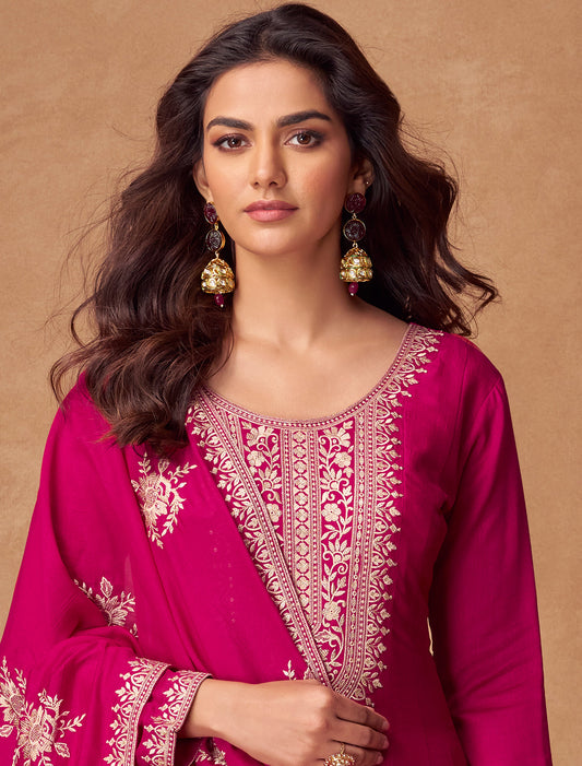 Pink Butterfly Net Luxrious Semi Stitched Salwar Suit Thread Work Embroidery & Fancy Lace