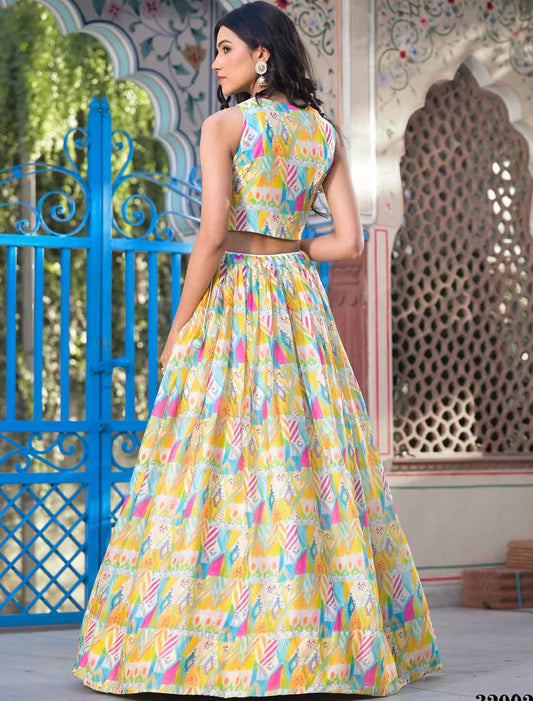Yellow Georgette Digital Print Micro Cotton Ethnic Lehenga Choli