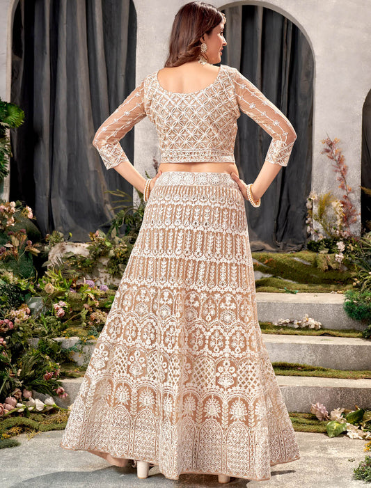 Ethnic Peach Slub Silk With Soft Net Zari Embroidery Lehenga Choli