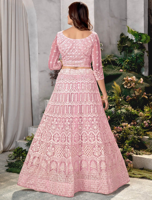 Pink Soft Net Dori and Resham Embroidery Ethnic Lehenga Choli