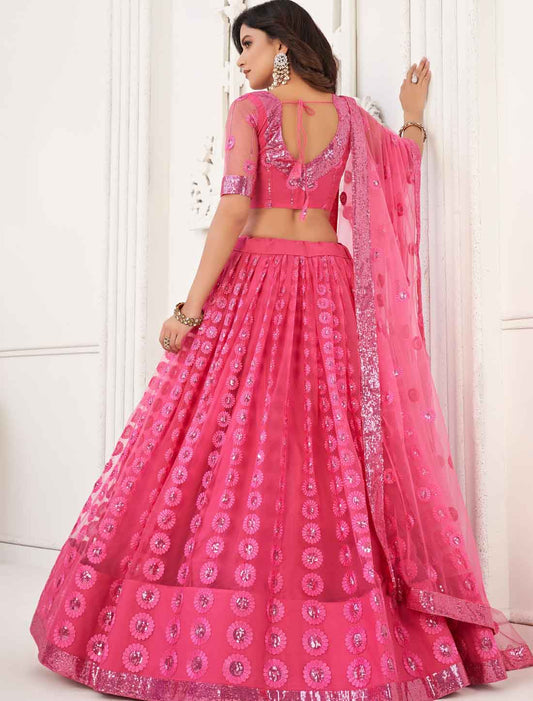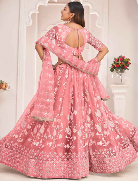 Pink Designer Embroidery Semi-Stitched Lehenga Choli