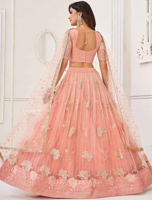 Peach Ethnic Embroidery Designer Semi-Stitched Lehenga Choli