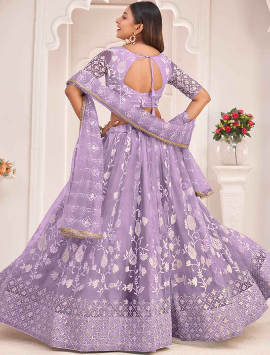 Designer Lavender Ethnic Embroidery Lehenga Choli