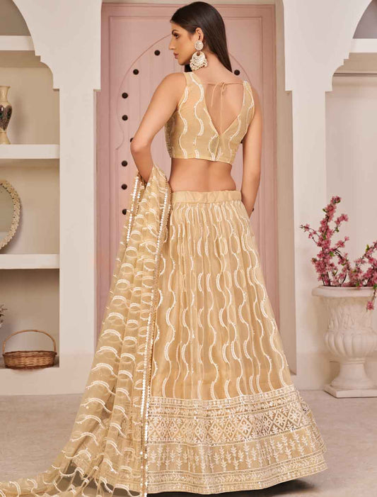 Designer Beige Ethnic Embroidery Lehenga Choli