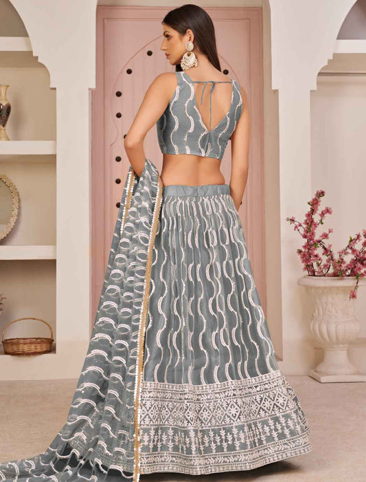 Grey Embroidery Ethnic Semi-Stitched Lehenga Choli