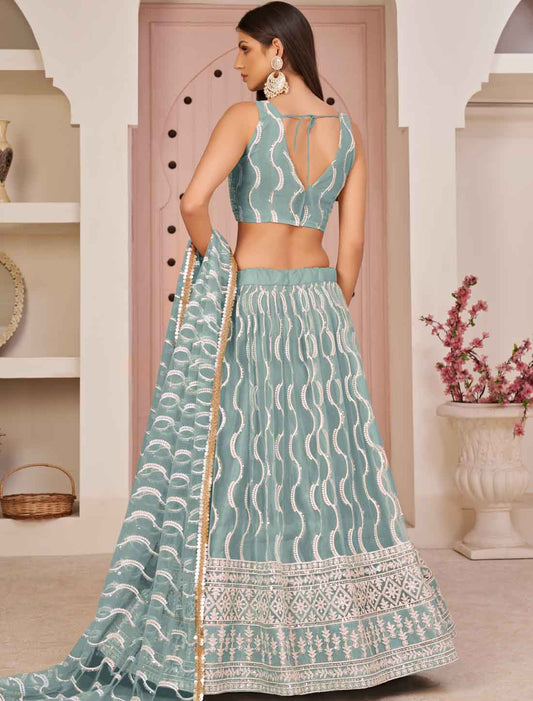 Peacock Green With Pure Georgette Ethnic Lehenga Choli