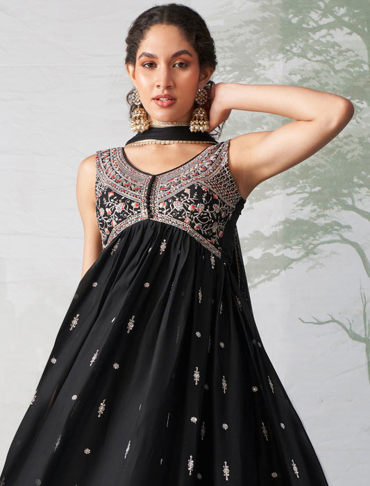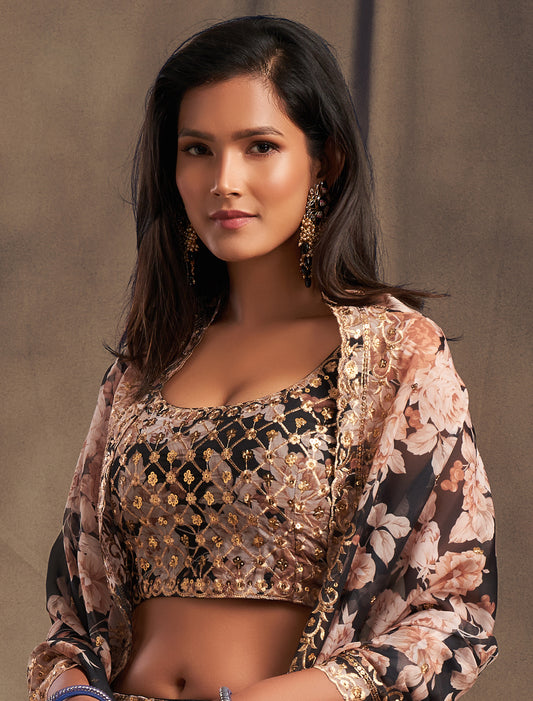 Black Ethnic Oraganza Lehenga Choli Dupatta With Zari Work