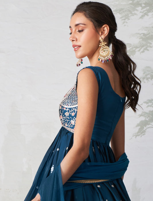 Blue Butterfly Net Thread Sequence Embroidery Designer Lehenga Choli
