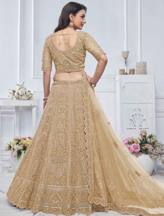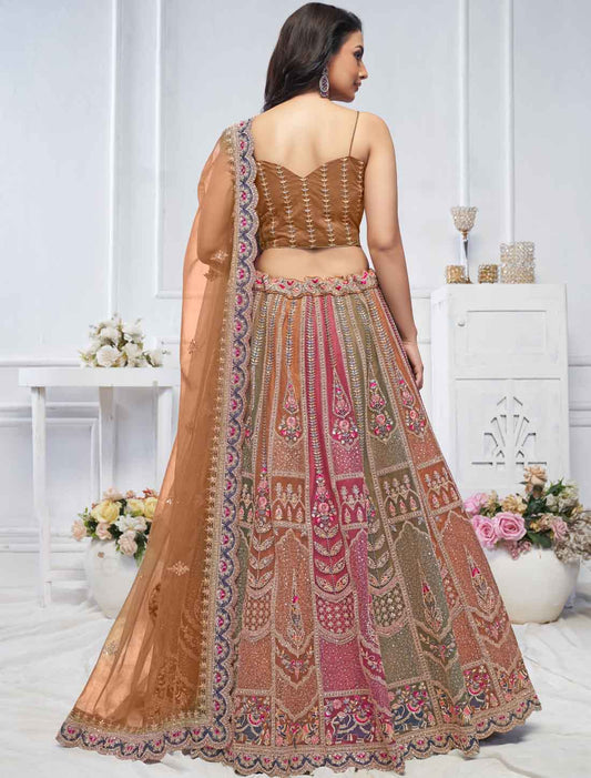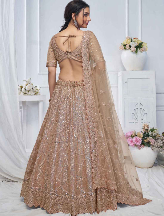 Alluring Brown Sequins Soft Net Bridesmaid Lehenga Choli An Dupatta