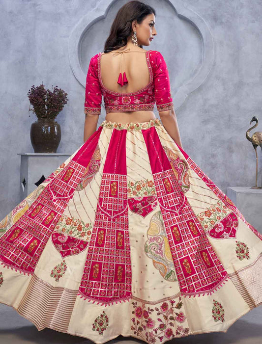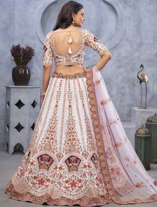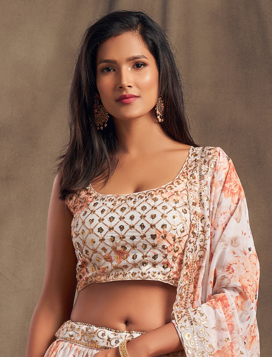 Ethnic White Organza Lehenga Choli With Sequins Embroidery