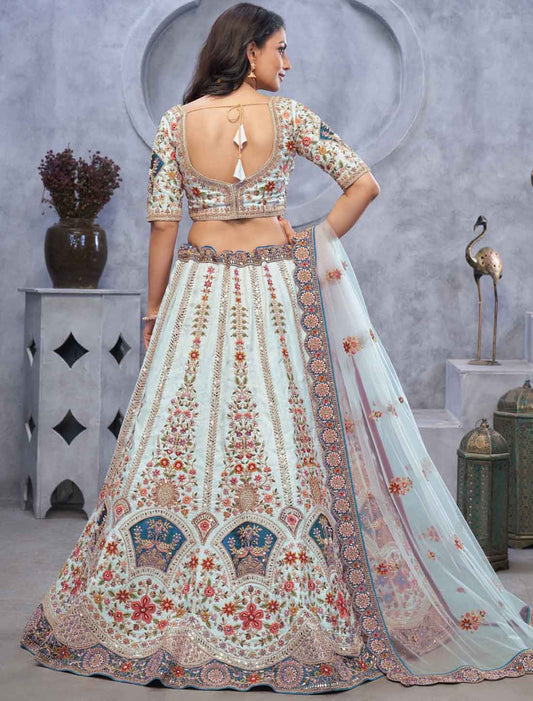 Stunning sky blue with Zari Paisley Embroidery Ethnic Lehenga Choli