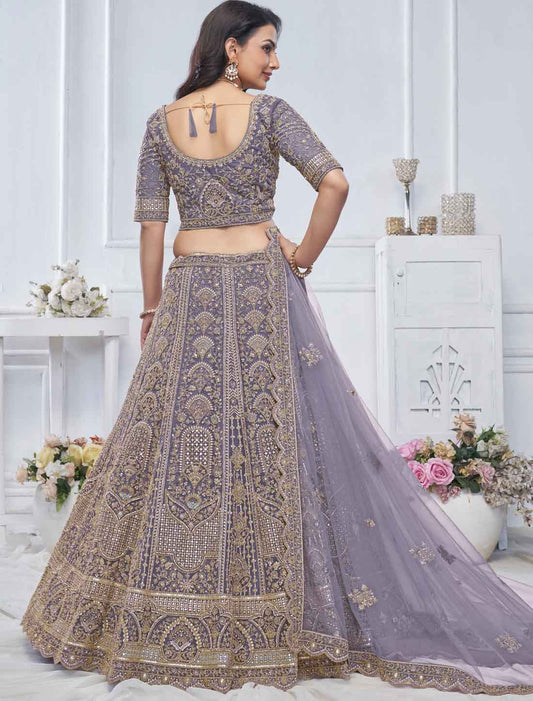 Soft Net Peacock Purple Embroidered Bridal Ethnic Lehenga Choli