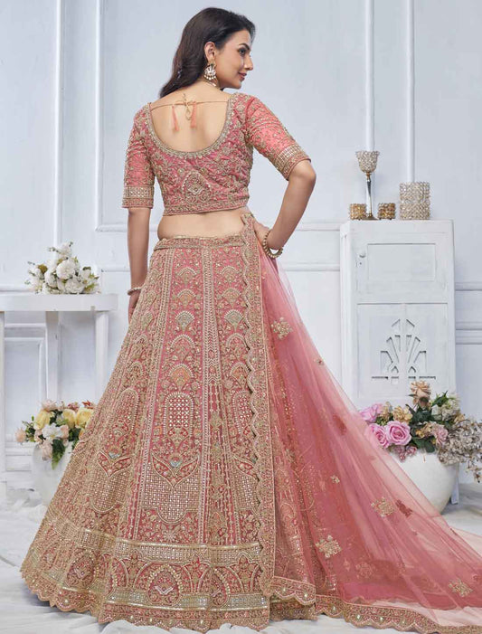 Soft Net Pastel Onion Ethnic Embroidered Bridal Lehenga Choli