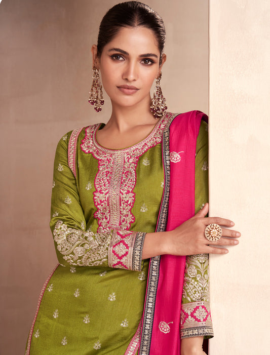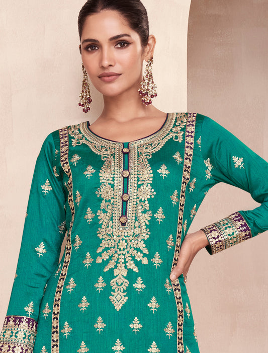 Luxurious Premium Silk Ethnic With Designer Green Kurta Sets