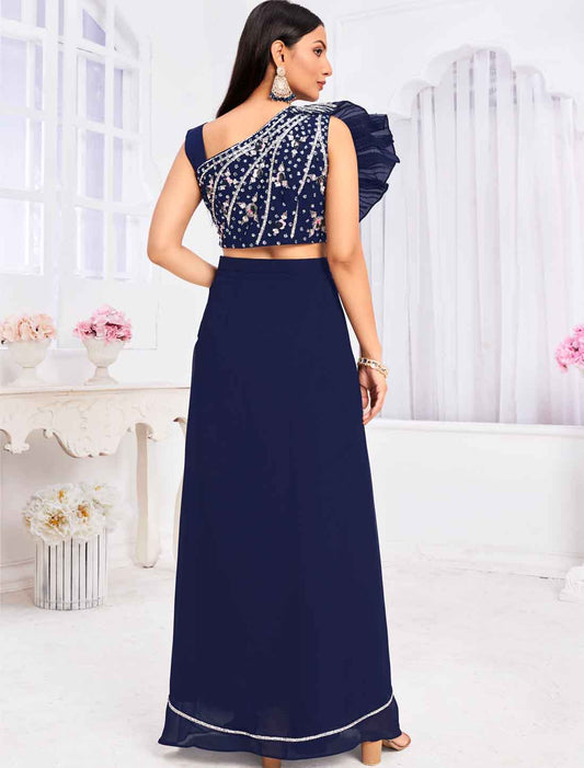 Elevate New Blue Georgette Ethnic Crop Top with Sharara & Choli