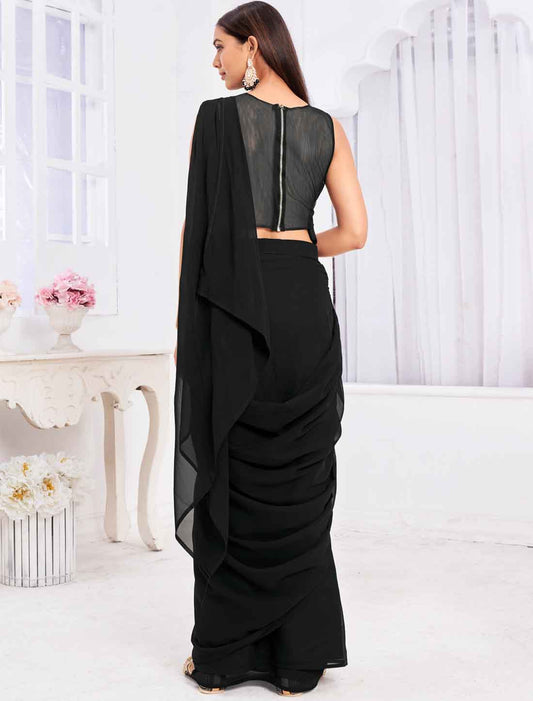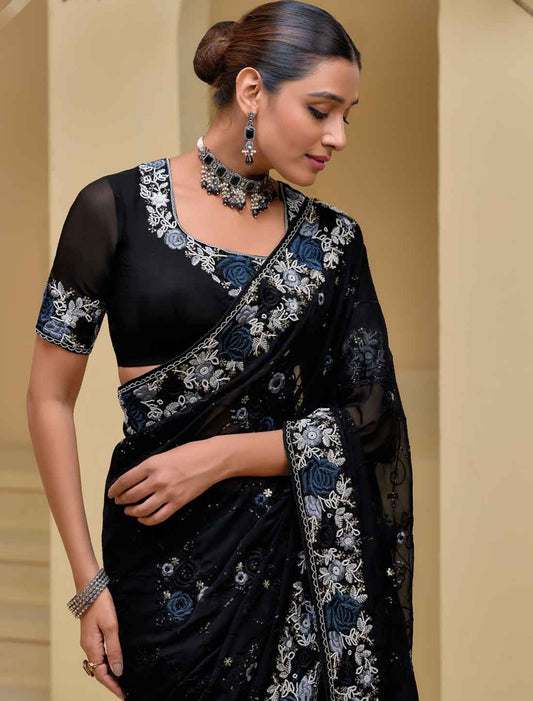 Black Georgette Ethnic Wear Embroidery Top with Saree & Choli