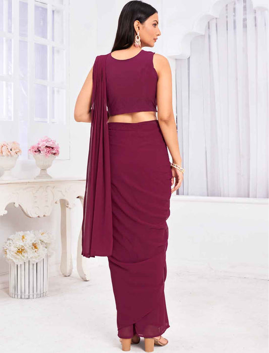 Luxurious Wine Georgette Ethnic Wear Crop Top with Sharara & Choli