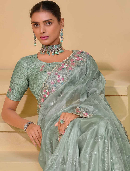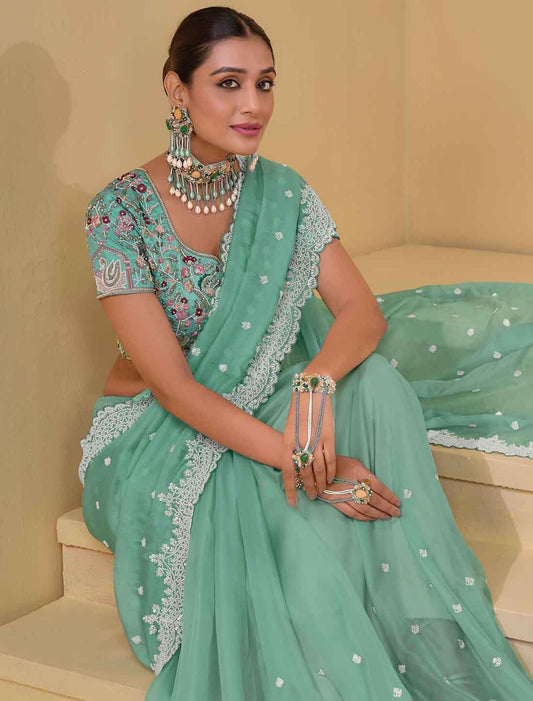 Sea Green Pure Banarasi Tuscany Designer Ethnic Saree