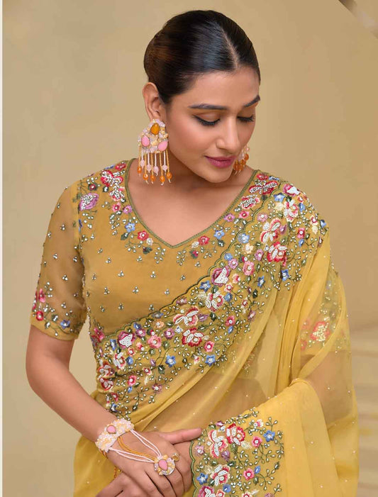 Mustard Designer Pure Banarasi Tuscany Ethnic Saree