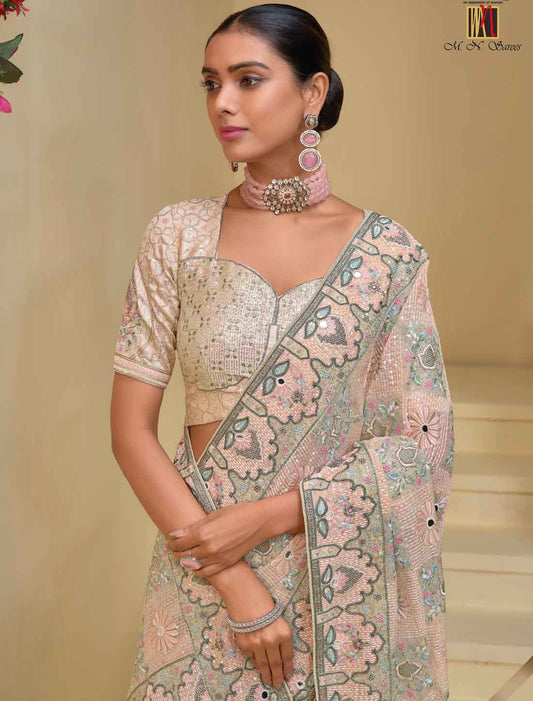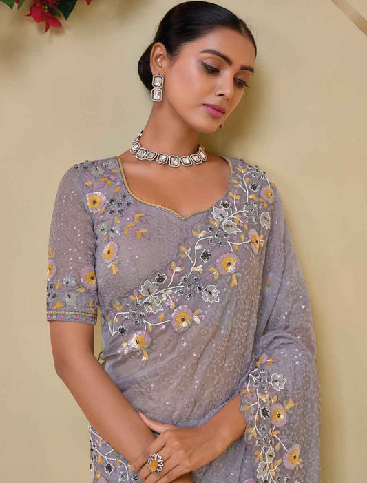 Experience Soft Chiffon Ethnic Hand Work Designer Saree For women