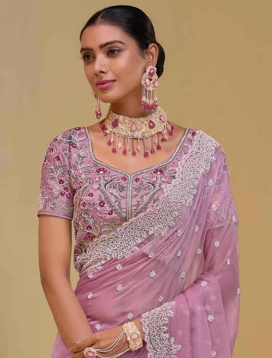 Traditional Look Designer Cherry Silk With Hand Work Ethnic Saree