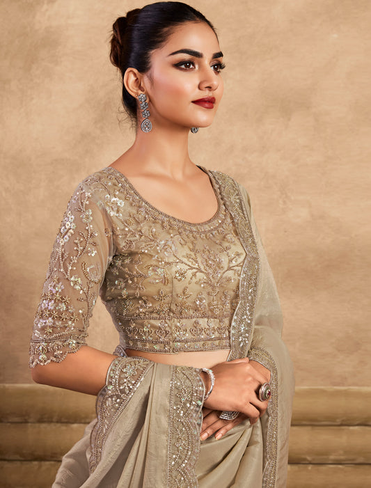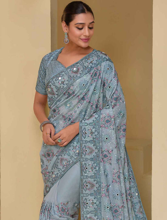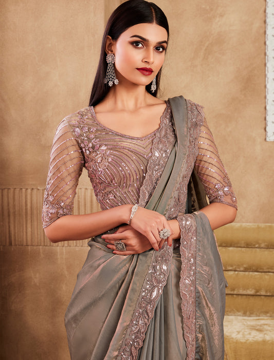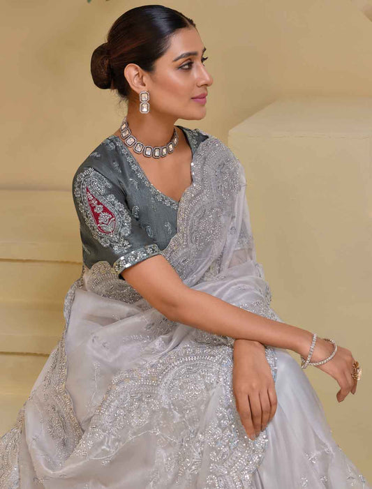 Designer Grey Pure Banarasi Tuscany Ethnic Saree