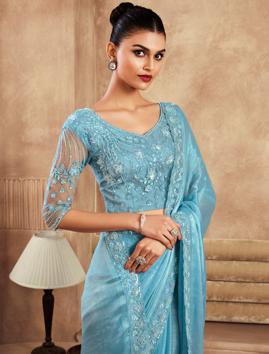 Georgette Sky Blue Soft Net Dupatta Ethnic Lehenga Choli Colletcion
