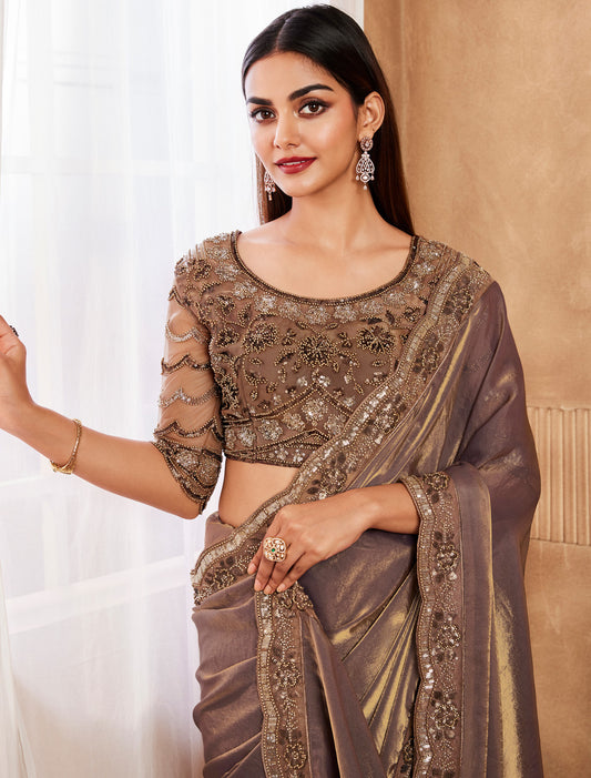 Style With Gold Flake Silk Ethnic Wear Hand Work Designer Saree