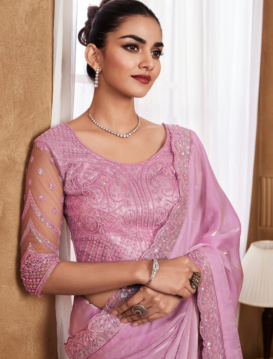 Ethinc Pink Pure Banarasi Tuscany Designer Saree