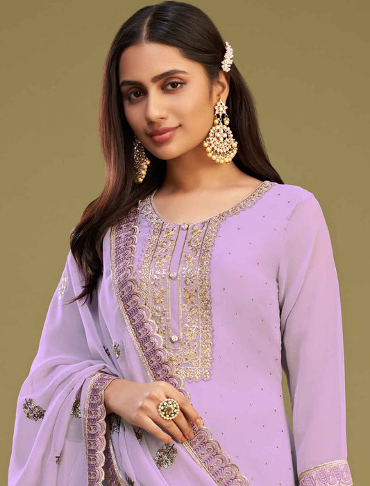 Lavender Ethnic Georgette Embroidery with Dull Santoon Kurta Sets