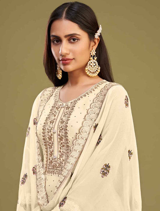 Off White Georgette An Dull Santoon Embroidery Work Ethnic Kurta Sets