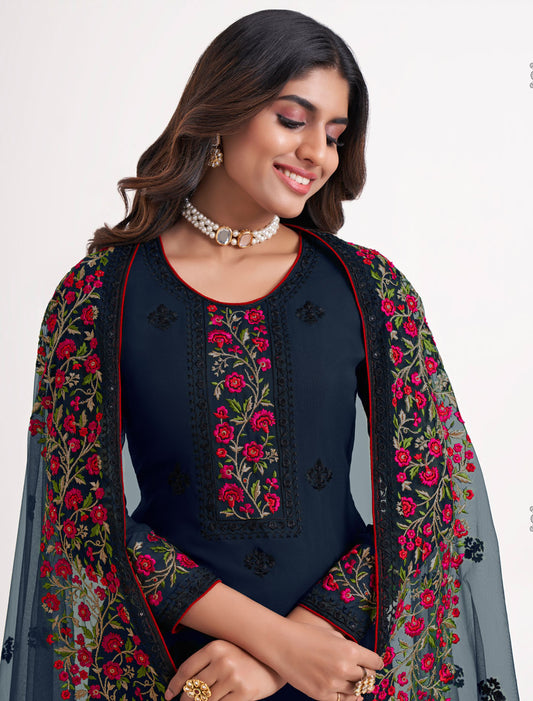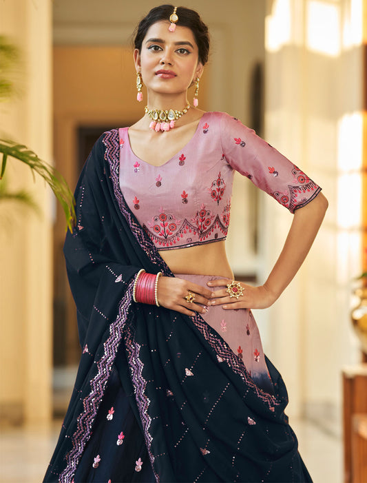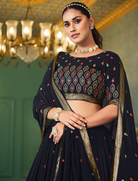 Introducing Navy Blue Georgette Traditional Embroidered Lehenga Choli
