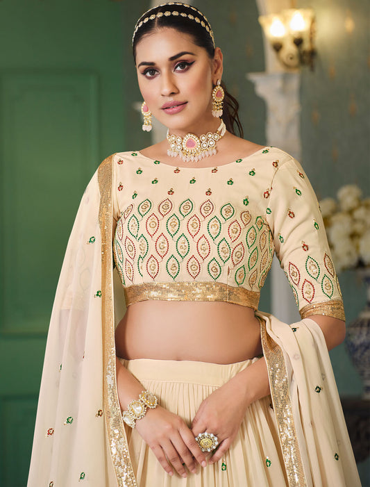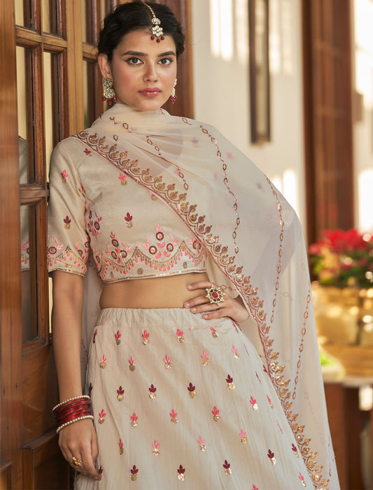 Introducing Our Beige Embroidered Semi-Stitched Lehenga Choli