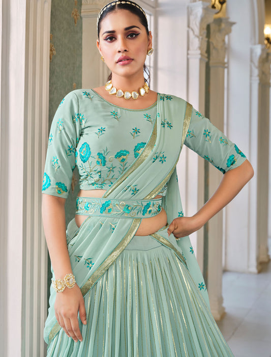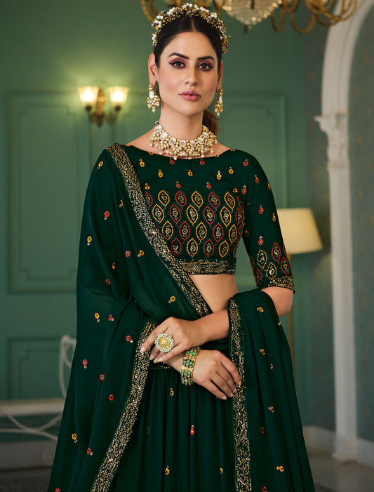 Elevate Your Wardrobe With Our Embroidered Green Lehenga Choli