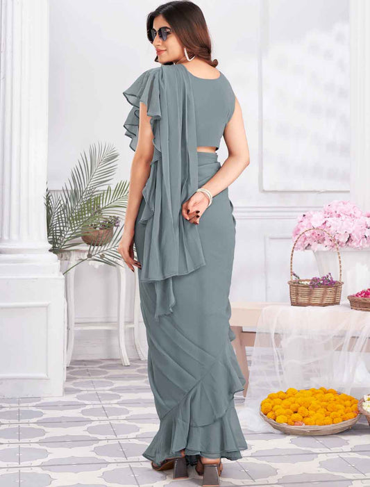 Blue Georgette & Fancy Ethnic Wear Crop Top with Sharara & Choli
