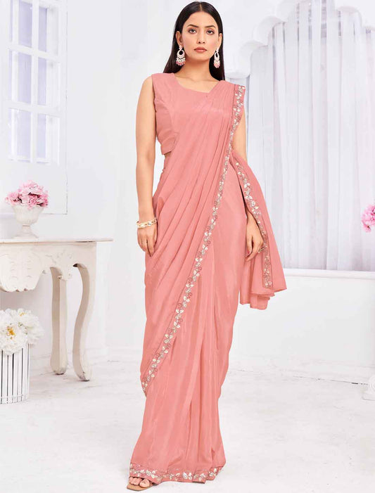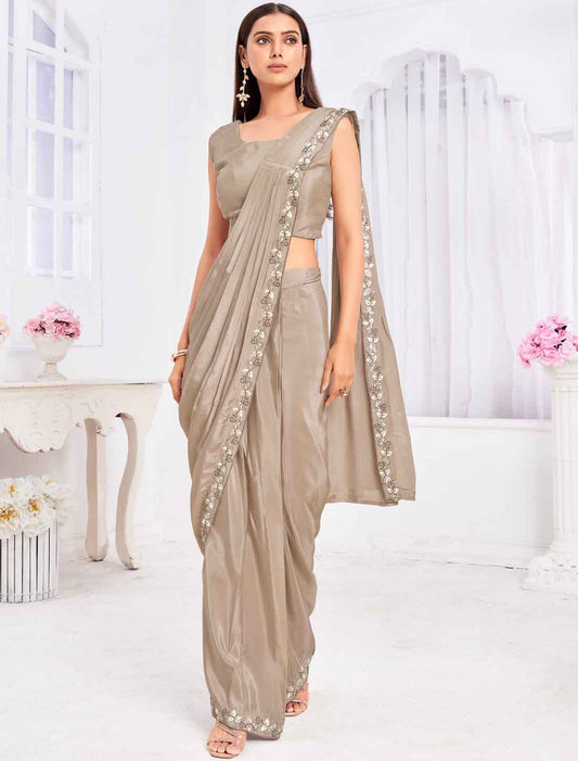 Drape Satin Silk & Fancy Embroidery Work Party Wear Saree & Choli