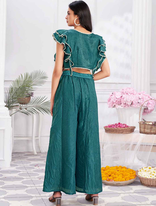 Ethnic Shimmer Georgette & Fancy Crop Top with Sharara & Choli