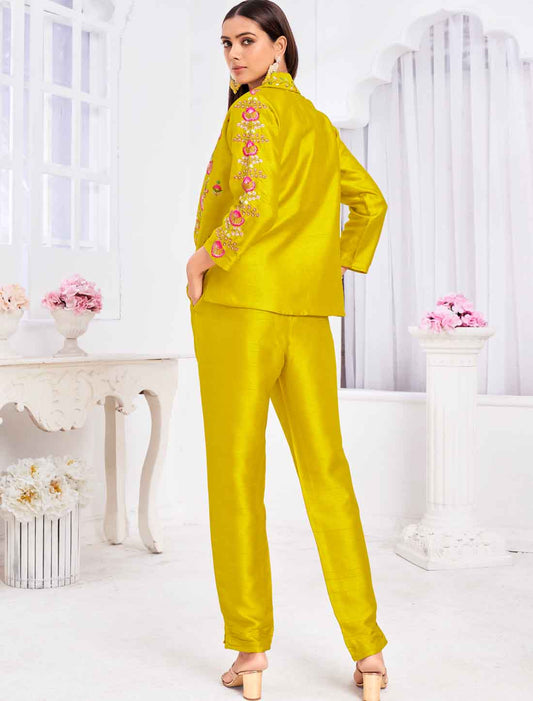 Discover Party Wear Tussar Silk Crop Top with Jacket an Choli & Pant