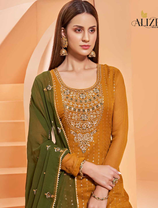 Yellow Semi Stitched Ethnic Women Georgette Salwar Suit With Bottom And Dupatta