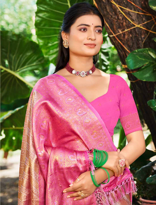 Pink Assasm Silk Woven With Meena Work Ethnic Saree